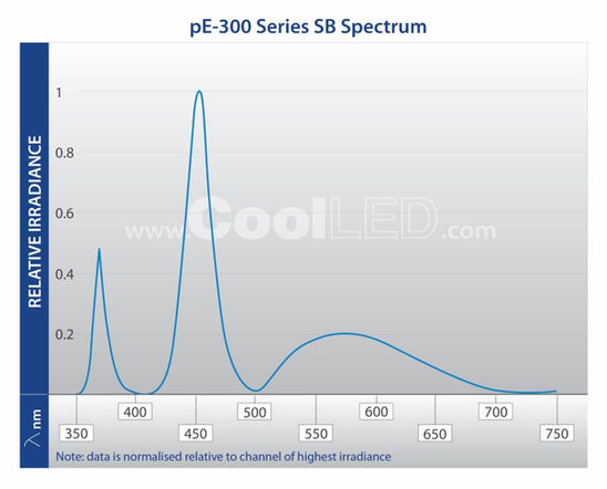CoolLED pE-300 white light source (pE-300 White), 4 channel excitation (pE-300 Lite or Ultra). Controllable via BNC, USB control or desktop controller.